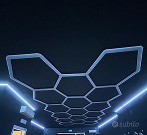 Vendo installazione LED a soffitto composta da *elementi esagonali modulari*, perfetta per palestre, showroom, barber shop, studi creativi o ambienti moderni.