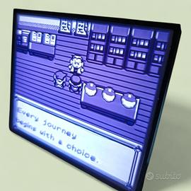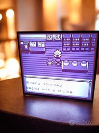 Lampada litofania Pokémon, misure 17x17x5cm. Scena iniziale del gioco Pokémon per gameboy. La parte frontale è interamente bianca, l'effetto bianco e nero si vede con la luce interna accesa. Un'idea regalo stile nerd.