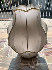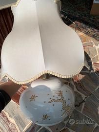 Vendo elegante lampada da tavolo vintage in porcellana bianca con decorazioni dorate e paralume in tessuto sagomato. O Design classico e raffinato, ideale per camera da letto o soggiorno in stile vintage/shabby chic. La lampada è funzionante e in buone condizioni generali. Il paralume presenta normali segni del tempo (visibili in foto), ma resta ben utilizzabile. Caratteristiche: * Base in porcellana decorata * Paralume in tessuto con bordatura * Attacco standard * Cavo con interruttore Ritiro a mano