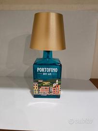 Cerchi un pezzo d'arredo unico che unisca lo stile della Riviera Ligure a un tocco di design moderno? Questa lampada fatta a mano è ricavata da un'originale bottiglia di Portofino Dry Gin, celebre per il suo colore azzurro vibrante e l'illustrazione pittoresca del borgo.