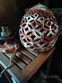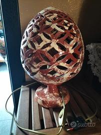 Particolare lampada da tavolo tipico artigianato pugliese corredata di portalampada e filo. Le dimensioni: cm 35 di altezza e 66 cm di circonferenza la rendono idonea per l'utilizzo in diversi ambienti, inoltre i suoi trafori filtrano una luce suggestiva e di grande atmosfera. Preferibilmente consegna a mano.