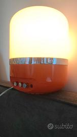 Lampada radio Europhon Italia, colore arancione, design Adriano Rampoldi anni '70 in buone condizioni, due pulsanti per due intensità di luce. Il terzo pulsante attiva la radio (solo OM, quindi non sintonizza nessuna stazione). Colore arancione brillante. Sulla parte anteriore, ha 3 pulsanti: uno per la radio AM, uno per la luce morbida e uno per la luce intensa e un connettore per le cuffie. Lampada emblematica degli anni '70 che appare in "L'utiopie du Tout Plastique 1960-1973". Buone condizioni generali. Lampadina a vite E14 (inclusa). Misure 27x17 cm circa