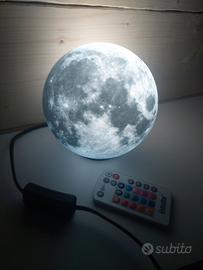 bellissima lampada realistica della luna. È stata realizzata con la stampa 3d ed è molto più realistica rispetto a quelle vendute in commercio. insieme ad essa è già compresa la lampadina da 350 lumen con 16 colori che si possono cambiare da remoto con il telecomando anch esso compreso.
