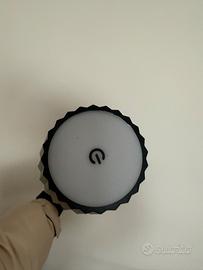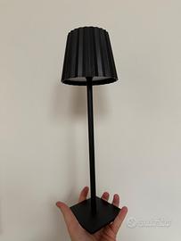 Lampada da tavolo a led con asta fissa. Realizzata in metallo con Paralume in abs. Luce LED con tre programmi di luminosità e funzione dimmer per la regolazione dell’intensità. Durata: fino a 4 ore in base alla modalità di utilizzo. 1200 mAh. Ricarica tramite cavetto USB-C in dotazione. Dimensioni: 37 h cm, Ø 11,5 cm, Peso: 676 gr. Colore nero. Confezionata montata in scatola dedicata di dim. 41x15x13 cm.