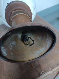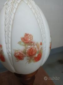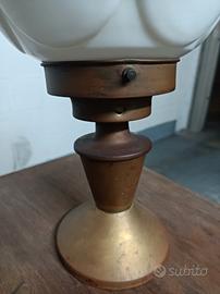 Lampada Art Nouveau anni '20 -' 30 in vetro goffrato in alabastro antico, con motivo floreale e ornamento in ottone, classico arredamento francese.