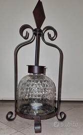 Lampada rustica con candela, altezza 37cm, larghezza massima diametro 20cm. Senza candele
