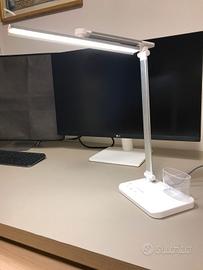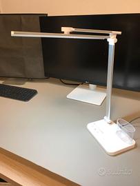 Nuova. Vendo causa inutilizzo.. la lampada LED è dimmerabile, con luce calda/fredda, modalità lettura e timer. Il fascio di luce è orientabile sia orizzontalmente che verticalmente. Si alimenta con comune USB C ed è dotata anche di USB 3.0 a 5V per la ricarica di vari dispositivi, oltre ad un portapenne. Altezza 36cm, larghezza LED 30,5cm.
