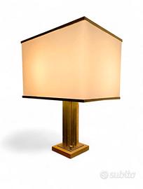 Lampada da tavolo dimmerabile scultorea a canne d'organo di Romeo Rega fine anni '70 in ottone, cappello in originale rifinito in ottone e rifoderato in lino