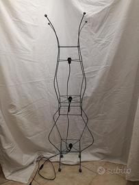 La foto da un effetto storto della struttura che è invece regolare. Lampada artigianale in metallo con impianto a 3 punti luce senza rivestimento alta 1,50 cm. È presente tutta la struttura metallica saldata e realizzata a mano e impianto completo con interruttore e 3 punti luce attacco E14. Trattata con prodotto antiruggine micaceo colore antracite. Lasciata volontariamente senza rivestimento per essere rifinita i secondo propri gusti con stoffe colorate, cordure o altro . questo è il prezzo richiesto solitamente in attivita commerciali per un semplice paralume nudo senza parte elettrica. Se trovo un idea per finirla poi la vendo sui 130/200 euro a seconda dei materiali e lavoro