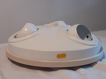 Rara. E' un disco bombato largo 34 cm ed alto 11 all' interno del quale si regolano le tre sfere (tipo le Reggiani) larghe 8 cm per orientare le luci in tutte le direzioni