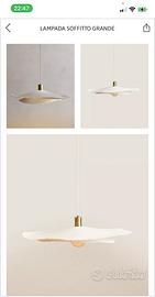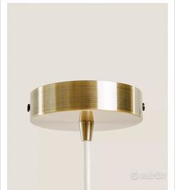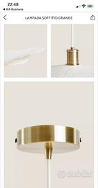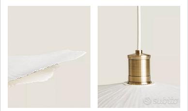 Lampada da soffitto con doppia foglia color ecrù e dettaglio dorato. Il cavo regolabile misura 106 cm e il paralume misura 78 cm da un'estremità all'altra. BIANCO SPORCO|6367/047