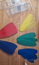 4 lampadari TITANIA di LUCEPLAN, completi di elementi ellittici in vari colori. Lievi segni di usura in corrispondenza degli attacchi a soffitto. Venduti in blocco, non separabili.