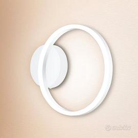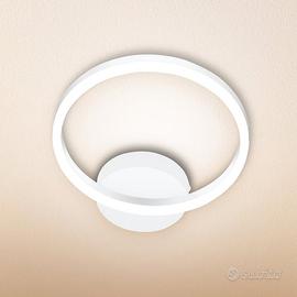 Struttura in metallo bianco con diffusore in plastica opalina per una luce morbida e uniforme. La forma ad anello consente un’emissione luminosa diffusa e gradevole.
