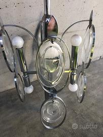 lampadario anni 70 Oscar Torlasco. Metallo cromato e vetro, buone condizioni funzionante