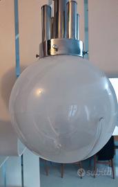 Lampadario a sospensione mid century. Made in Italy. Vetro opalino, acciaio e legno. Semplicemente stupendo, iconico e imponente. Le condizioni sono ottime! #lamp #muranovintage #midcentury