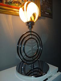 Lampada in acciaio space age, con paralume in vetro di murano.