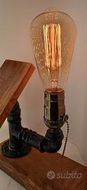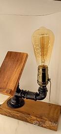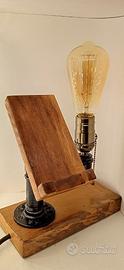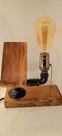 Lampada Steampunk Industriale con porta cellulare,costruita interamente a mano con tubi per idraulica da 1/2 pollice, su base in legno verniciato, verniciata style vintage bronzata, accensione sul portalampada E27, completa di lampadina a filamento al tungsteno sempre in stile Steampunk del 1800, ingombro; L =20cm, A=27cm, P=10cm.circa.