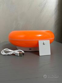 La lampada ha una forma a “ciambella” ed è ideale sia come lampada da tavolo/scrivania ma anche come lampada da muro grazie all’apposito supporto (presente in foto)