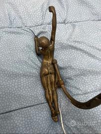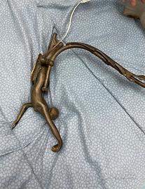 Applique stile liberty lampada in bronzo da muro o da appoggio con campana in vetro smerigliato