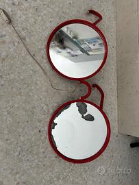 Anni 80 90 Lampada stile pop Metallo rosso a forma di occhiali a specchio Con lampadine dietro ogni lente Uno specchio rovinato dal tempo
