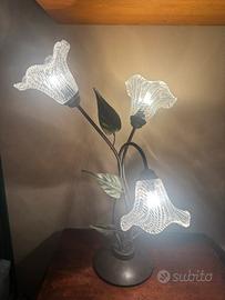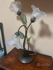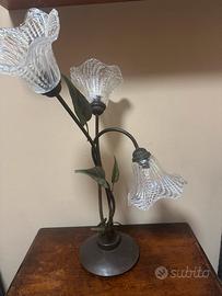 Lampada da tavolo decorativa in stile Tiffany/floreale (tre luci, vetri lavorati e struttura metallica con foglie). altezza cm 70.Funzionante