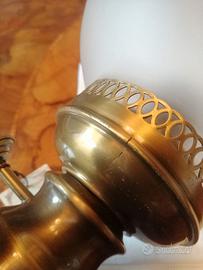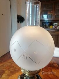 La base in ottone che sorregge la sfera in vetro presenta una piccola crepa che non compromette comunque l'integrità della lampada.