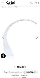 Lampada Taj di Kartell, bianca, modello grande, disegnata da Ferruccio Laviani, più che una lampada è un segno tridimensionale, una scultura luminosa, una presenza che ci accompagna sulla scrivania come su un mobile. Pur essendo una lampada da tavolo, bella da accesa come da spenta, Taj sfrutta la tecnologia LED per ottimizzare e minimizzare il più possibile la sorgente luminosa. Intensità luminosa regolabile. Dimensioni h. 62 x 55 x 15 cm. Preferibile consegna a mano zona di Milano, Bergamo o Pavia, possibile la spedizione a spese dell’acquirente