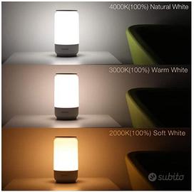 Questa lampada con 4 modalità RGB e luce bianca calda e fredda, con il pannello di controllo tattile a 360 gradi offre una vasta gamma di opzioni per soddisfare le diverse esigenze; è perfetto come lampada da comodino, Nightlight per bambini, Lampade per cameretta, lampada rilassante, luce romantica, lampada da lettura, ecc Illuminazione Professionale; la lampada da tavolo led nostro adotta una struttura ottica professionale e elementi led di alta qualità, che garantiscono una sorgente luminosa stabile e colori rgb vivaci con illuminazione priva di sfarfallio e tempi di assistenza prolungati Luminosità Regolabile; la luminosità può essere regolata facilmente e con precisione facendo scorrere il pannello rotante; lmpostarlo per leggere, lavorare, rilassarsi o qualsiasi altra attività; la temperatura del colore può essere regolata tra 2000K -> 3000K -> 4000K; è possibile scegliere una luminosità adatta per i bambini per proteggere gli occhi Intelligent Atmosphere Lights; la lampada led de 4 rgb Mode mostra virtualmente infiniti colori vivaci; scegli un colore adatto al tuo umore, se ti rilassi e guardi un film, o se hai bisogno di una luce romantica per cena; è anche abbastanza intelligente da ricordare la tua ultima configurazione dopo averla disattivata Regalo perfetto; scelta eccellente per il tuo amico e sorpresa totale diversa