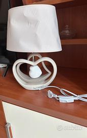 Bellissima lampada da tavolo a forma di cuore, in ceramica beige e con paralume in tessuto bianco. Ideale per un tocco romantico in casa.