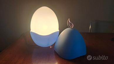 Lampada ideale per cameretta oppure da tavolo di colore azzurro con calotta bianca.