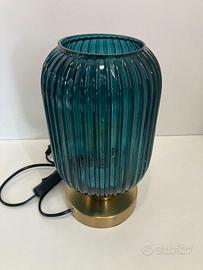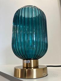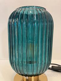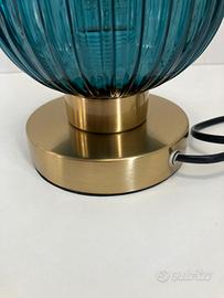 Lampada tavolo ottone vetro ottanio