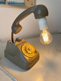 Vendo lampada realizzata con un vecchio telefono vintage della Siemens, completa di porta lampadina (E27), cavo elettrico intrecciato e rivestito con tessuto, interruttore (on/off) e spina elettrica piatta da 16A.