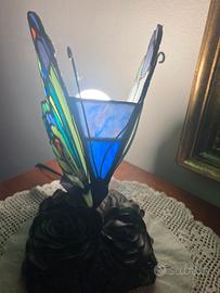 Vendesi lampada d'atmosfera in stile Tiffany, caratterizzata da un paralume artistico a forma di farfalla con ali spiegate. Un pezzo d'arredo molto particolare.
