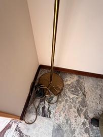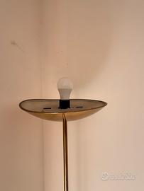 Vendo elegante lampada da terra in stile vintage, con struttura in metallo color ottone. La lampada è alta circa 184 cm ed è dotata di un paralume orientato verso l’alto.