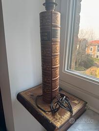 Vendo lampada da tavolo originale realizzata artigianalmente a partire da un libro antico rilegato (“Voltaire – Oeuvres Complètes”).