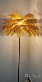 Lampada di design da terra, nuova in confezione originale, con piume di struzzo, colore oro