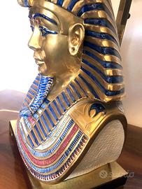Rara scultura edizione limitata numerata. N°876 di 1000. Lampada rappresentante TOUTANKHMON in porcellana pregiata Italiana Capodimonte. Firmata da EDOARDO TASCA, periodo anni 70' Scultura con doratura perfetta, e colori brillanti, la condizione è perfetta. Scultura pari al nuovo. La scultura è alta cm 54 - con il paralume altezza cm 80 - base larghezza cm 29 - profondità cm 20 - Il paralume in tessuto di seta deve essere restaurato, riporta uno strappo da usura del tempo.