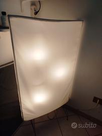 causa inutilizzo vendo questa lampada. ha tre lampadine e il telo che c'è sopra si può togliere per lavarlo. ha un regolatore di intensità di luce che si aziona con il piede. si trova in provincia di Modena.