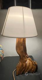 Lampada di ulivo secolare del salento , realizzata arigianalmente con tronco di legno massello di ulivo salentino. Nuova
