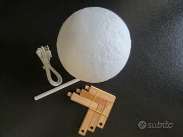 Lampada umidificatore a forma di luna, un elemento decorativo e funzionale per la tua casa. - Design ispirato alla luna. - Base in legno.