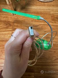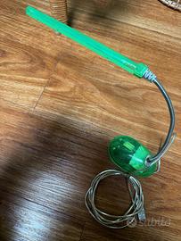 Lampada USB retrò anni 2000 con collo flessibile orientabile e doppia illuminazione indipendente. • Primo pulsante: accende la luce LED superiore da lettura/scrivania; • Secondo pulsante: accende una soffusa luce fluo nella base verde semi-trasparente. Perfetta per scrivania, PC, notebook, setup gaming, cameretta o arredamento retrò Y2K. Oggetto particolare e difficile da trovare con doppia funzione luminosa. Funzionante e in buone condizioni estetiche. Dimensioni (cm) Altezza totale: 41 Lunghezza led: 8,5 Lunghezza base: 9 Larghezza base: 5,5 #lampadausb #Y2K #retrotech #anni2000 #usb #gamingsetup #desksetup #vintagepc #led #lampadadesign #collezione
