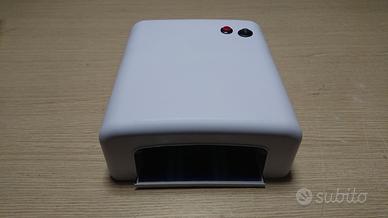 Lampada a raggi UV 36W professionale, ideale per la ricostruzione professionale di unghie mani e piedi. Adatta anche per la polimerizzazione di smalto gel semipermanente UV e tutto ciò che necessita di polimerizzazione in lampada UV. È dotata di base estraibile che facilita la pulizia e la sostituzione dei bulbi. Dotata di timer con spegnimento automatico a 90/120 secondi e tasto per luce continua.