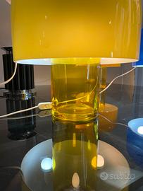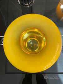• Materiale: Pregevole vetro di Murano soffiato, con una vibrante colorazione Giallo/Ambra trasparente e opaco (il gambo è trasparente, il diffusore superiore è opalino/coprente).