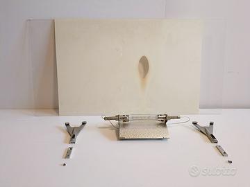 Gruppo lampada con cablaggi per lampadina doppio attacco R7S e morsetti, funzionanti e in ottime condizioni. La parte centrale opaca della lastra diffusore rettangolare in acrilico, è stata danneggiata nella satinatura dal calore della lampadina, il diffusore è sostituibile.