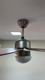 Disponibili lampadari ventilatori a soffitto con pale. Come nuovi, struttura legno e acciaio, finitura rovere. 4 lampadari uguali e 1 diverso come in foto. 3 Telecomandi annessi che consentono di regolare intensità luminosa e temperatura. Vendibili in blocco o singolarmente.