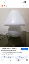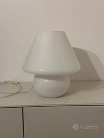 Lampada a forma di fungo in vetro di murano bianco iridescente