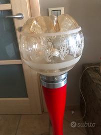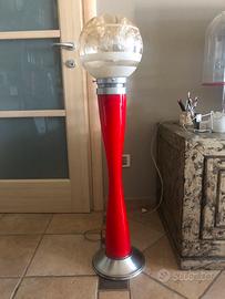 Lampada da appoggio vetro Murano, base cromo e vetro con illuminazione interna, sfera superiore vetro con illuminazione interna, cablaggio revisionato. Arreda con gusto tutti gli ambienti della casa. Ideale anche per spazi commerciali espositivi, vetrine, negozi. Altezza cm. 100