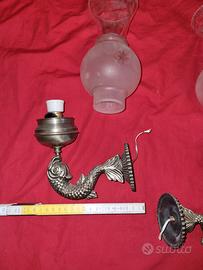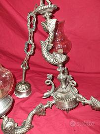 Vendo Raro e elegante Lampadario comprensivo delle sue due applique/lampada a muro stile art deco (Fonderia Innocenti ) in ottone massiccio a forma di pesce , tutto originale vintage
