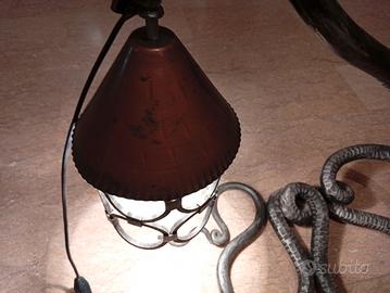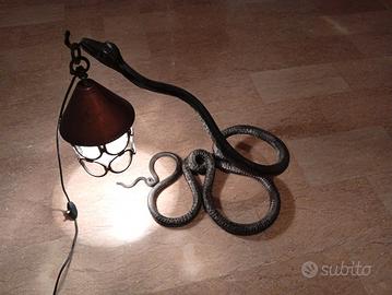 Lampada da tavolo d'epoca con una base unica e di grande impatto, interamente realizzata in ferro battuto a forma di serpente attorcigliato. Ottime condizioni vintage, con patina originale. Funzionante.