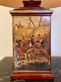 Lampada vintage da tavolo in ceramica con scena di caccia “fox hunting” ispirata alle celebri incisioni di Henry Alken.